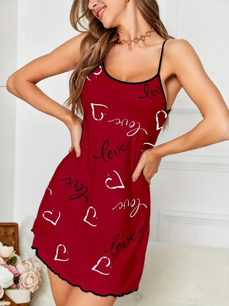 Casual Scoop Neck Heart & Letter Print Slip Nightdress