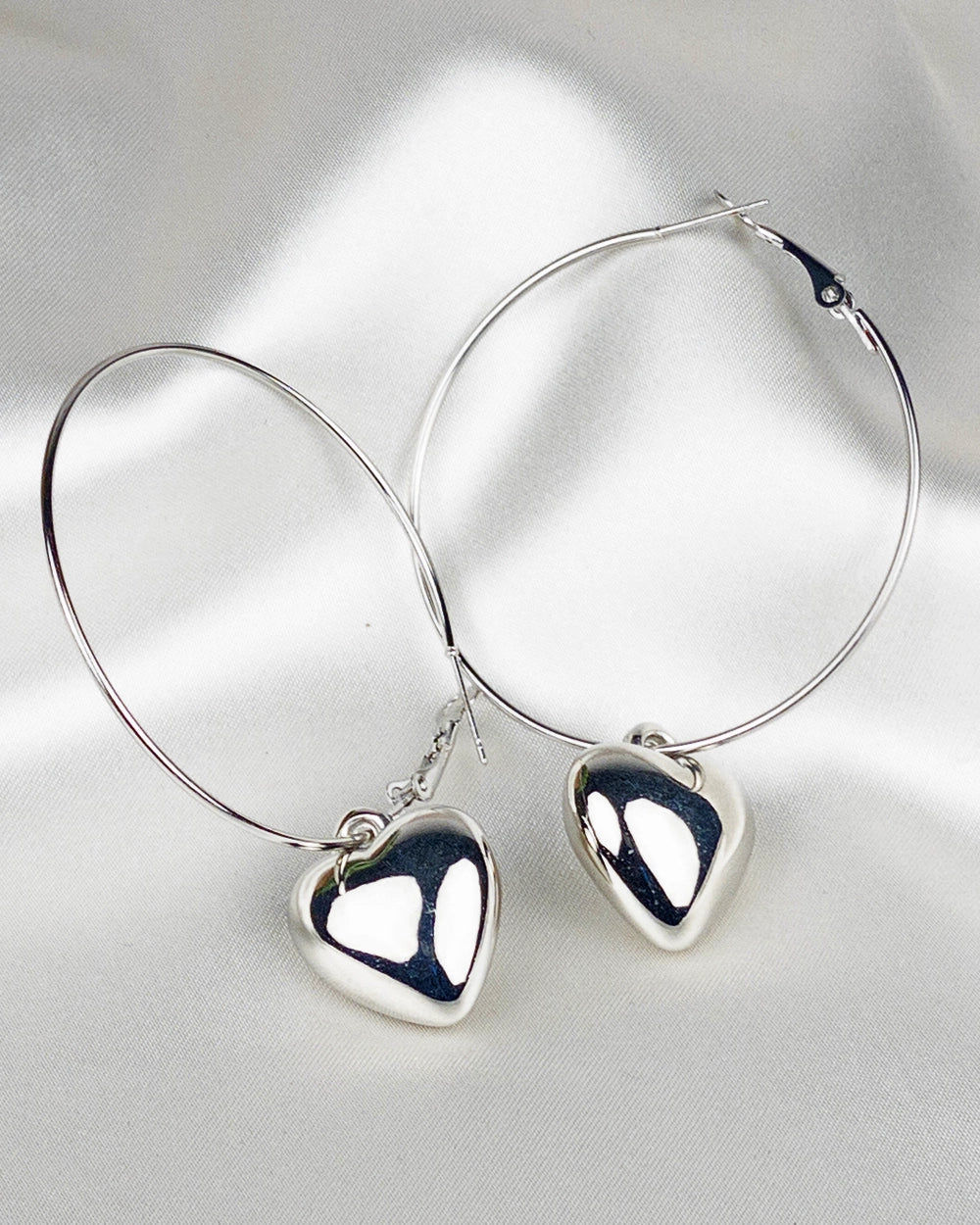These mesmerizing heart-shaped earrings will add a hint of glamour to your look! Constructed from superior quality materials, the large round hoops are comfortable for wearing all day. The exclusive 3D heart shape will surely make you stand out.