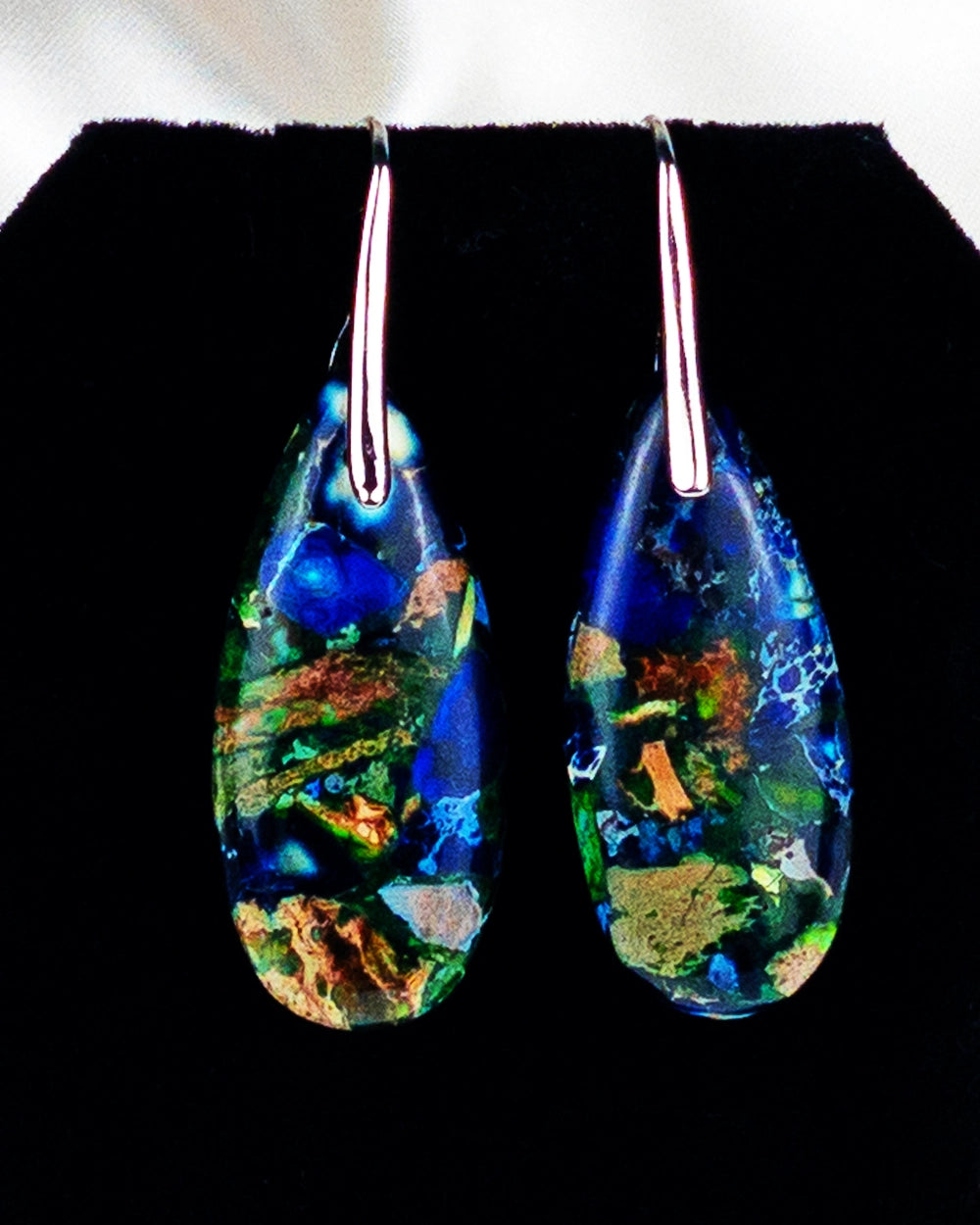 Natural Sea Sediment Stone Dangle Healing Drop Earrings