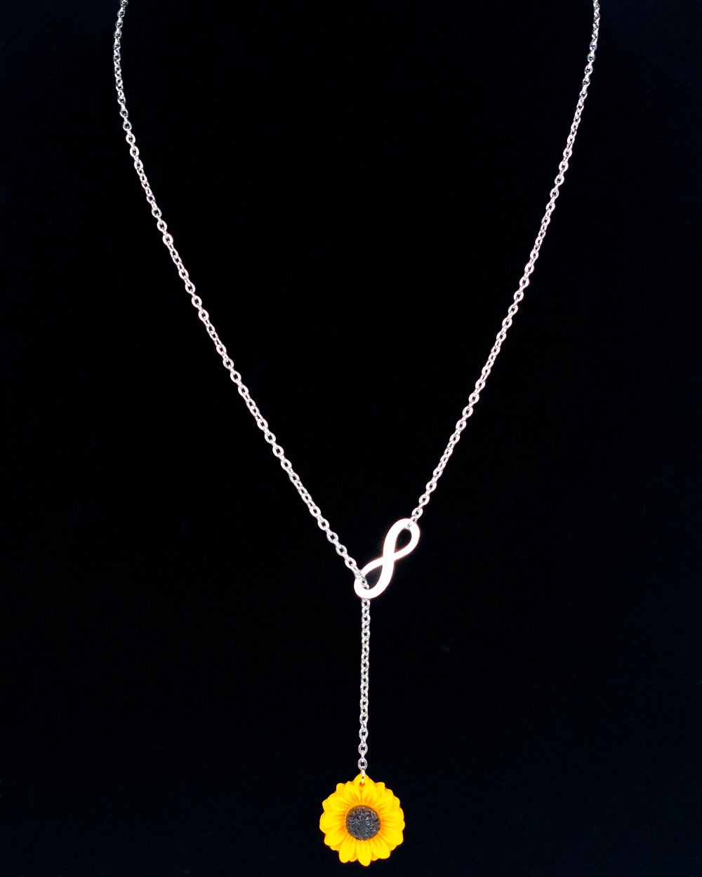 This sunflower Infinity lariat necklace exemplifies love and beauty! Its graceful yellow sunflower, detailed infinity charm, and lasting quality make it a standout for any occasion. Whether looking for a romantic wedding accessory or delightful daywear, this necklace will give any ensemble a special finish. With its superior materials and sophisticated design, this necklace promises years of joy and elegance.